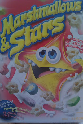 There is just something very creepy about a crazed looking star with ginormous, out of proportion teeth, and crossed eyes trying to lure your kiddo into eating their marshmellowy goodness. It's actually creepy enough that Xavier won't go into the pantry knowing that box was there. I can't say I blame the kid.